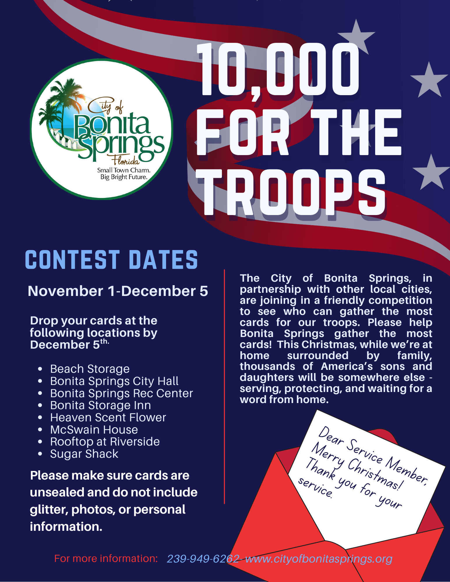 We are collecting new and unwrapped toys and non-perishable food items to donate to local charities. Please bring an item to donate!